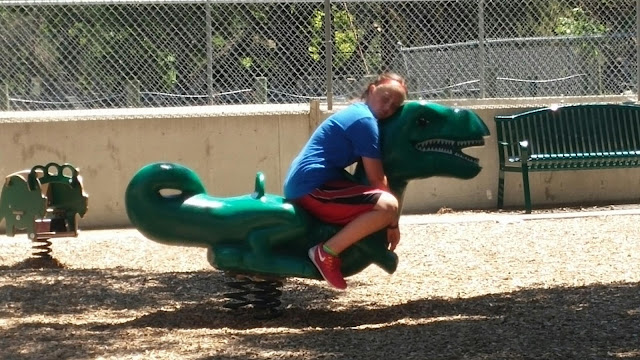 I decide right then and there that we would have a Manditory Family Fun Day. I told the kids at breakfast and said that pictures would be required. We spent a few minutes taking pictures at Dinosaur Park and then they spent the rest of the afternoon swimming and jumping at Jenny Gultch.